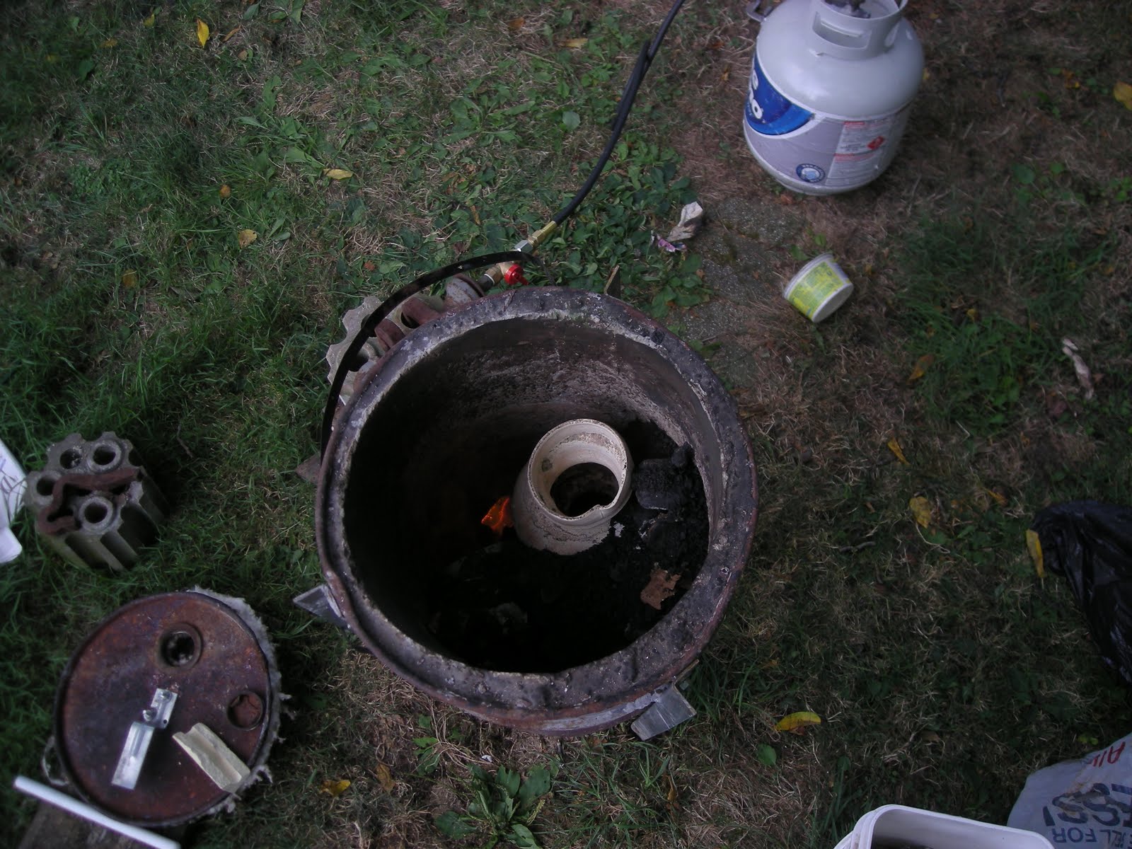 I have just come back from a 'weekend' in Carlisle PA in which I spent time working with Kurt in his studio preparing for a salt/wood/propane firing in his kiln. This firing is going to happen next weekend and I plan on documenting so there will be another post to follow this one with images of the whole deal. Just before that though my dad and I set up a small barrel that he lined with a refractory castable material and attempted to run a saltku (high temp, like cone 9-14, gas firing using charcoal and rock salt) firing. Because of the lack of a proper flue system we were only able to reach 1250 degrees F but it was still a worthwhile venture. We fired from about 6pm till midnight when the kiln basically stopped gaining temp for good. We are casting a real lid with a better opening for a flue so there will be another firing soon.